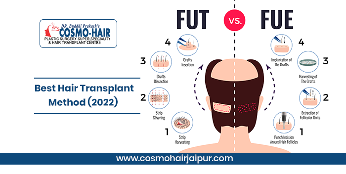 If we discuss the best hair transplant method 2022, then FUE and FUT are being considered by people around us. They go to a professional hair transplant specialist and get it. If you are looking forward to getting a hair transplant, then visit Cosmo-Hair Clinic in Jaipur. Here you can fix an appointment with Dr. Buddhi Prakash Sharma. He is one of the best doctors for hair transplant in Jaipur. You can approach him.
